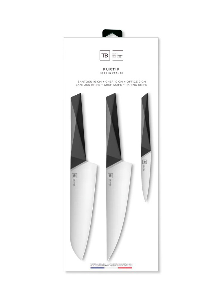 Набор ножей Furtif 3 пр. объединяет самые необходимые инструменты для повседневной и профессиональной кухни. Лезвия с зауженным профилем обеспечивают тонкий и аккуратный рез, а эргономичные рукоятки из ABS делают работу комфортной и легкой. Все ножи произведены во Франции с вниманием к деталям и традициям бренда Tarrerias-Bonjean.