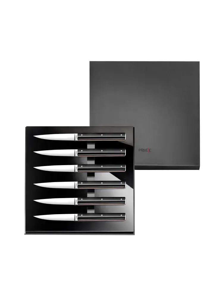 Набор столовых ножей Ulu 6 – элегантное решение для сервировки, в котором традиции сочетаются с современными технологиями. Эти ножи с рукоятками из карбона и лезвиями из стали Alenox были созданы дизайнером Бруно Моретти в сотрудничестве с рестораном Ги Савуа. Простота формы подчеркивает премиальные материалы и технологичность, а карбоновые рукоятки делают ножи легкими, прочными и долговечными.