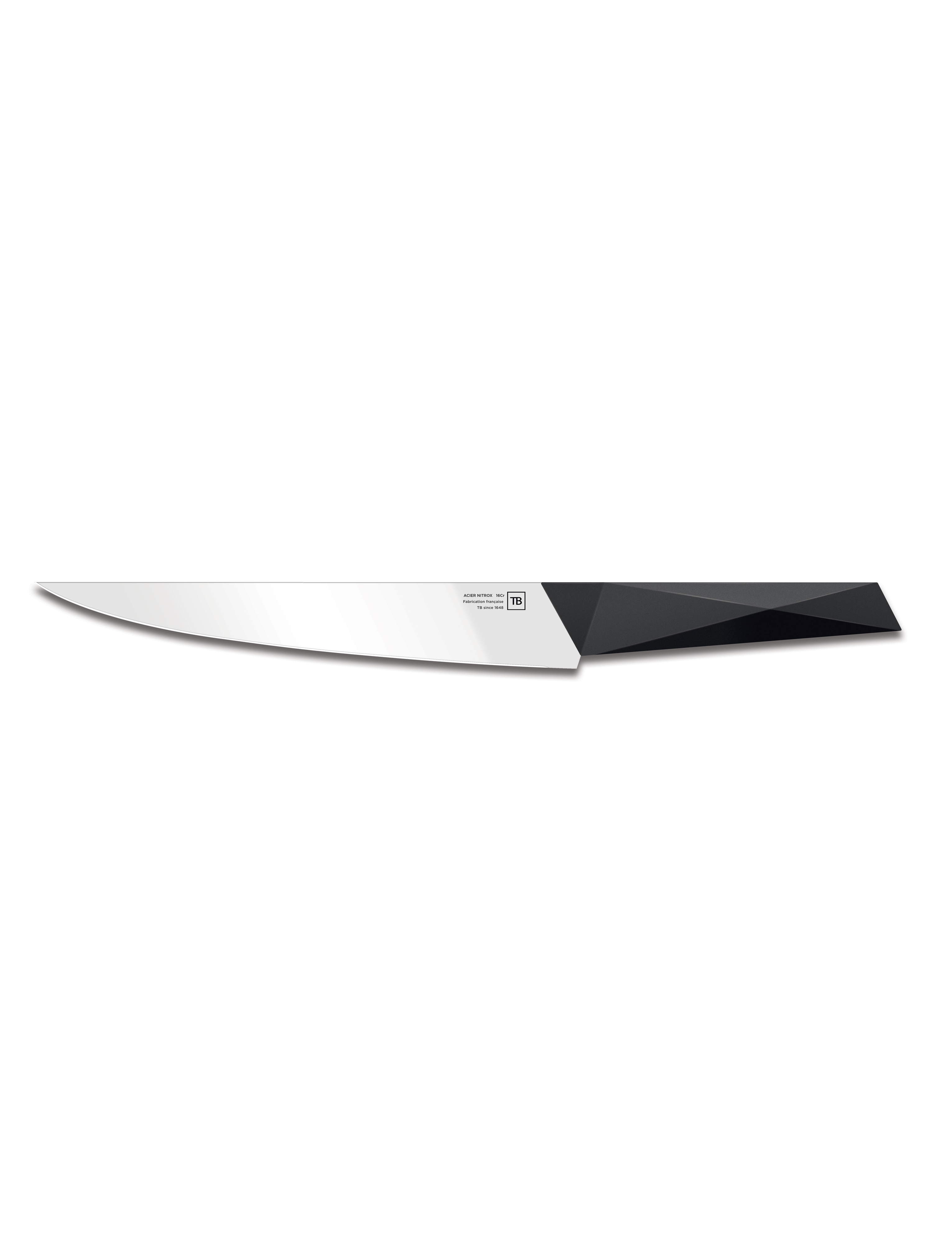 Длинное лезвие из нержавеющей стали длиной 21 см обеспечивает высокую точность реза, а эргономичная рукоятка из ABS подчеркивает современный дизайн серии. В этой версии нож оснащен классическим стальным лезвием – выбор для тех, кто ценит чистую производительность и вечную элегантность металла. Производство во Франции гарантирует качество и мастерство Tarrerias-Bonjean.